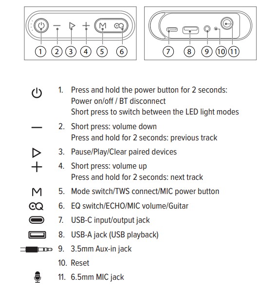 - Mikrofonski/ kitarski vhod (6.3mm MIC jack )
