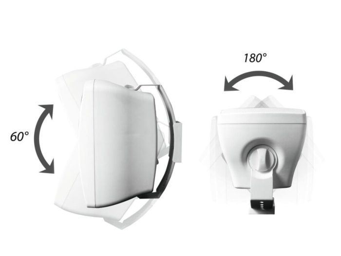 2 weather-proof speakers with mount | 4″ woofer | 0,5″ tweeter | 40 W RMS
