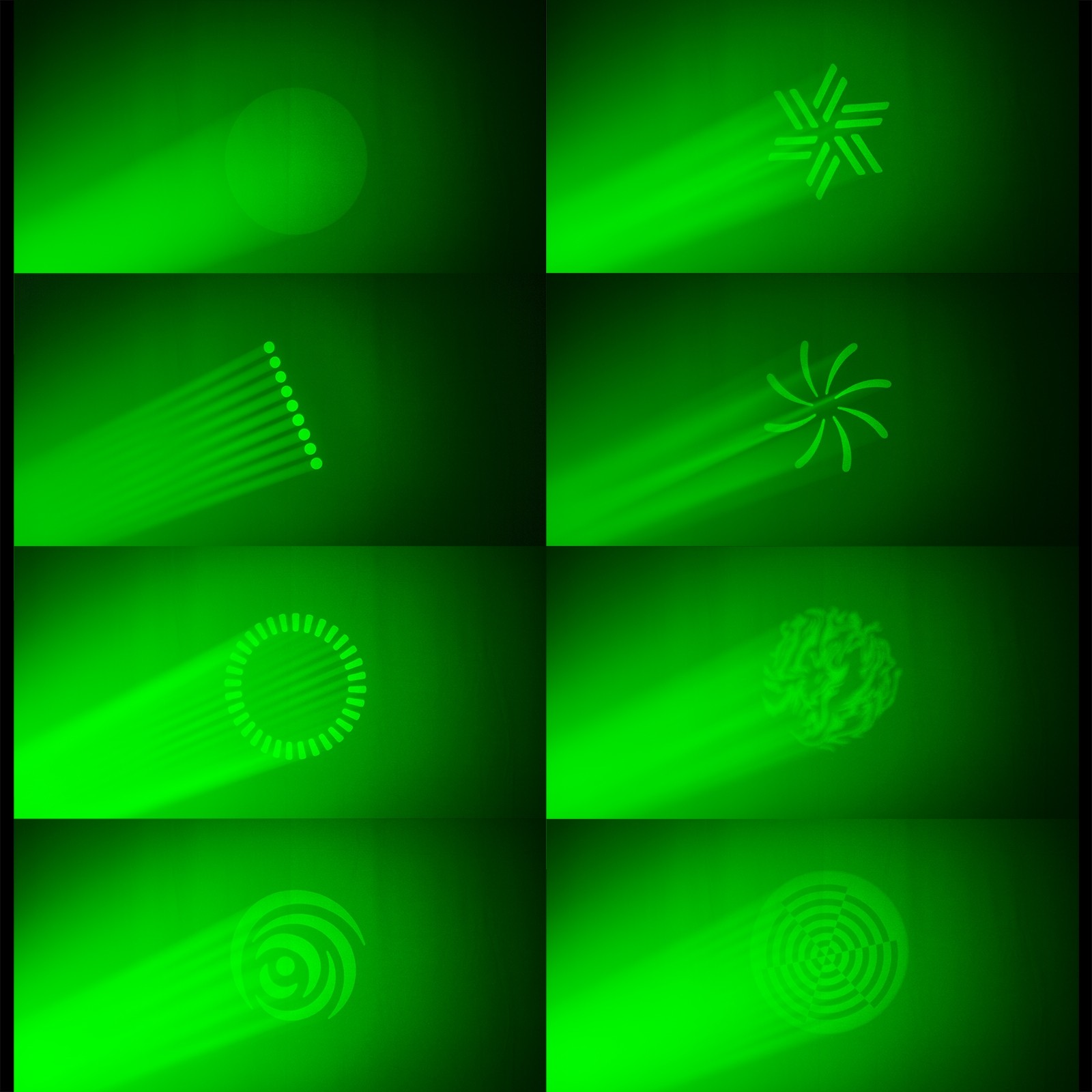 • Gobo Wheel 1: 2x glass and 5x metal gobos + open (interchangeable)