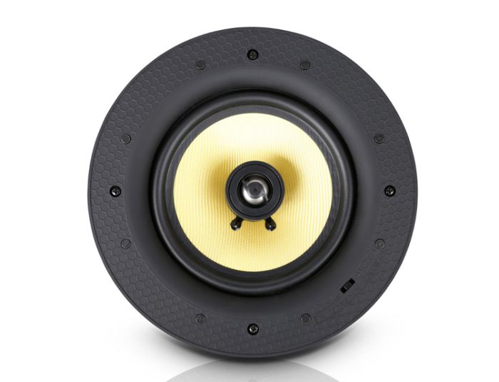Skoraj poravnana sprednja mrežica pokriva 6,5-palčni nizkotonec in 1,2-palčni visokotonec, ki zagotavljata čist zvok in visoko razumljivost govora.