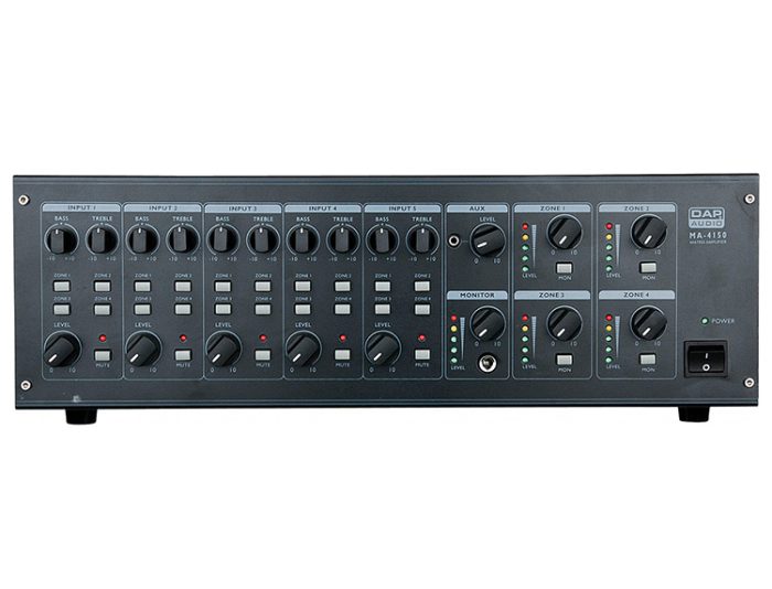 - Power outputs: 4Ohm, 8Ohm, 25V, 70V, 100V (terminal strip)