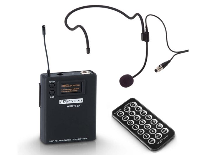 - Prenosni PA sistem, naglavni brezžični mikrofon ter žepni oddajnik, vgrajen MP3 predvajalnik, Bluetooth.