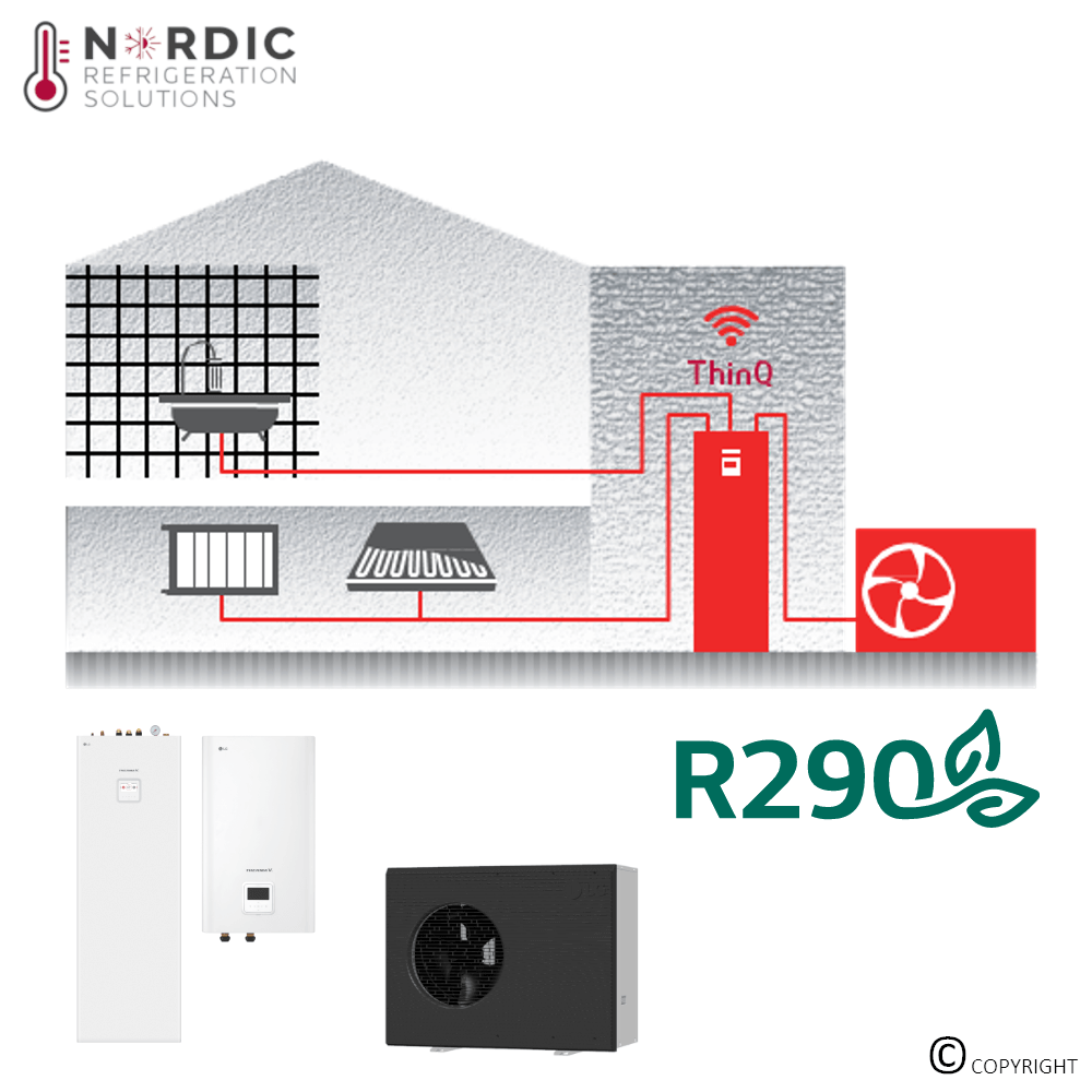 LG Monoblok HM093HF.UB40 + HN1639HC.NK0 hidro enota z grelcem, Toplotna črpalka 9kW (R290) 3 fazna + darilo klima LG W12TI (3,5kW)