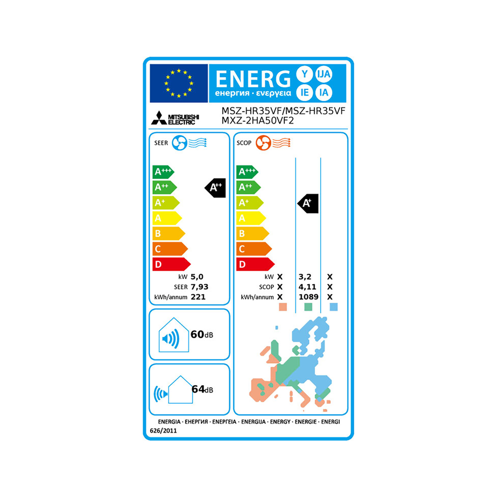 Mitsubishi HR pri hlajenju porablja malo energije in se pri uvršča v razred energijske učinkovitosti A++, pri ogrevanju pa dosega razred energijske učinkovitosti A+.