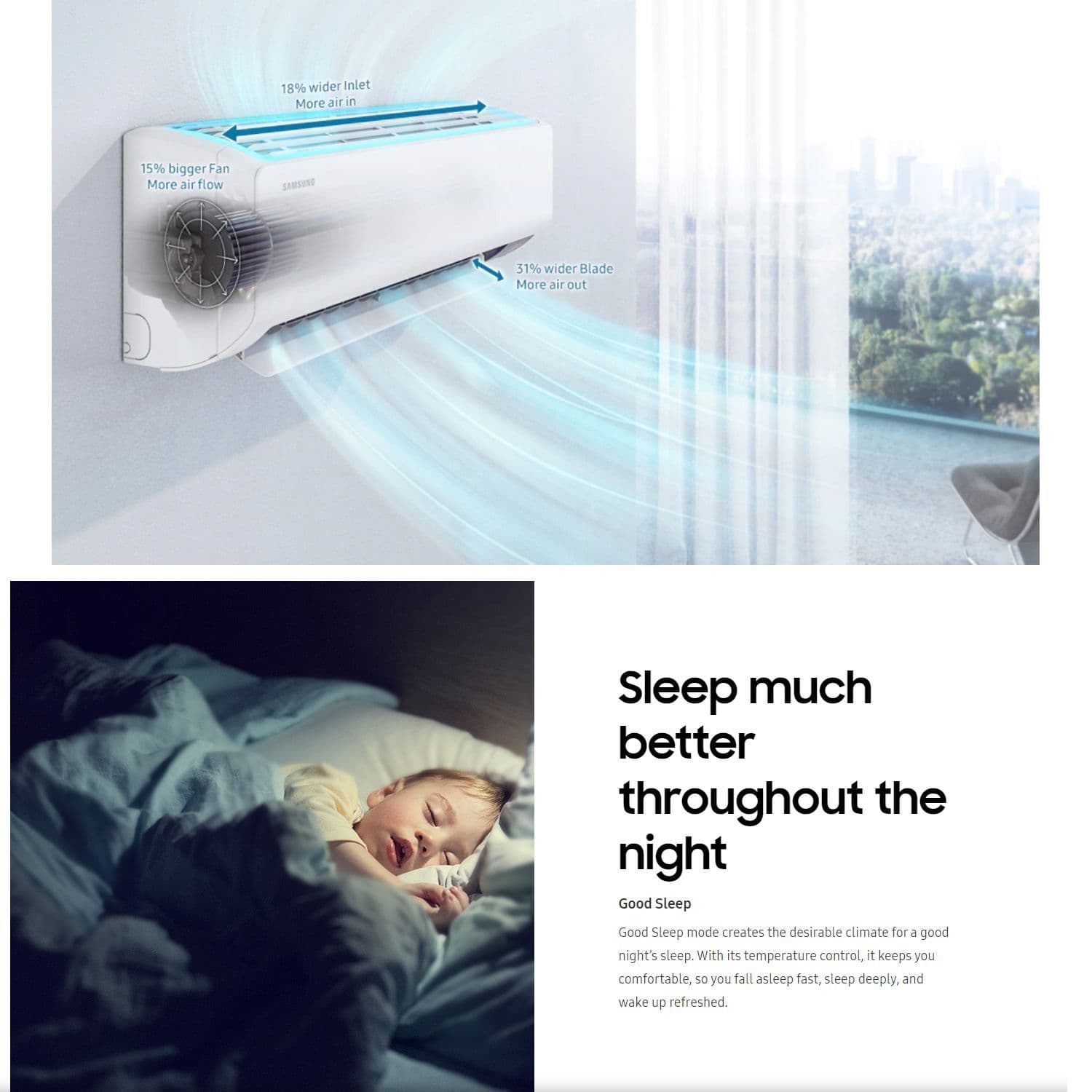 Klima zagotavlja uporabnikom idealne pogoje s ohranjanjem udobne sobne temperature s pomočjo Wind-Free™ hlajenja, ki nežno širi hladen zrak skozi 21.000 mikro zračnih lukenj. Klimatski sistem deluje v dveh korakih. Prvi zniža temperaturo z “načinom hitrega hlajenja”, kot ga pri klimah poznamo, ko je željena temperatura dosežena, pa se vklopi “Wind-Free™ hladilni način” z brezvetrjem. Takšen način delovanja zmanjša porabo energije do 72 odstotkov.