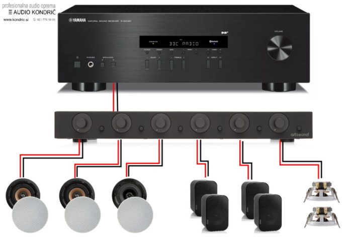 SET Kompletno ozvočenje, Stereo Receiver Yamaha R-S202D, 4 x nadgradni zvočnik, regulacija