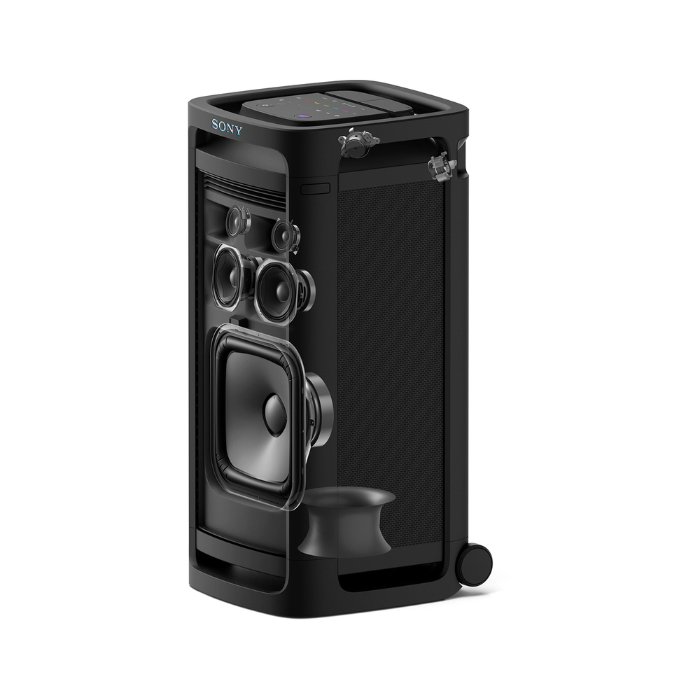 ULT gumb vas popelje v svet mogočnih nizkih tonov. Izbirate lahko med dvema načinoma: ULT1 za globoke, nizke tone in ULT2 za močne ter živahne nizke tone. Zahvaljujoč funkciji 360-stopinjskega zvoka in štirim visokotoncem se čist zvok razširi po celotnem prostoru, medtem ko srednjetonci poskrbijo za jasne vokale. Zvočniška enota X-Balanced in ULT DUCT pa prinašata nizke tone, ki jih ne le slišite, temveč tudi občutite. Pametna zasnova skrbi, da se moč glasbe razširi povsod okoli vas. S pomočjo 10-pasovnega izenačevalnika si prilagodite zvok po svojih željah.