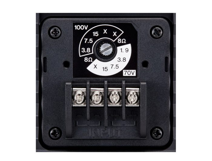 Vgrajen transformator za delovanje 8 Ohm ali 100V sistem.